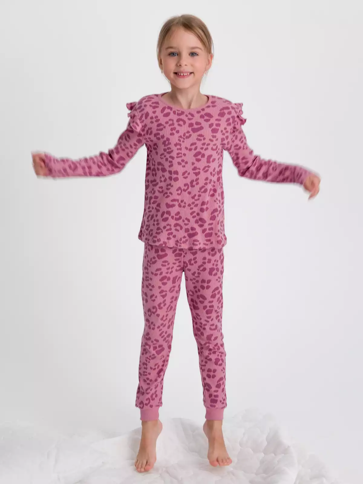 Пижама детская с длинными рукавами выполнена из натурального хлопка, она необычайно мягкая, легкая и не сковывает движения. Брюки на резинке по талии. На плечах имеются крылышки. Вся модель декорирована принтом.