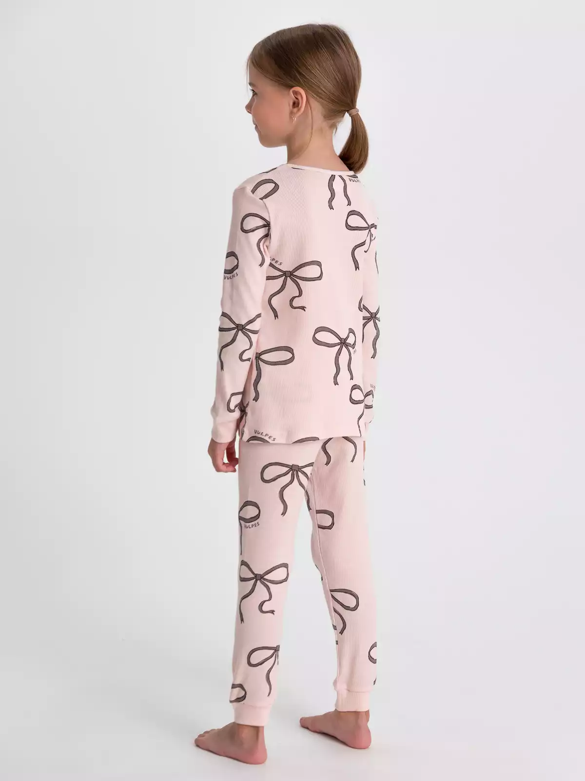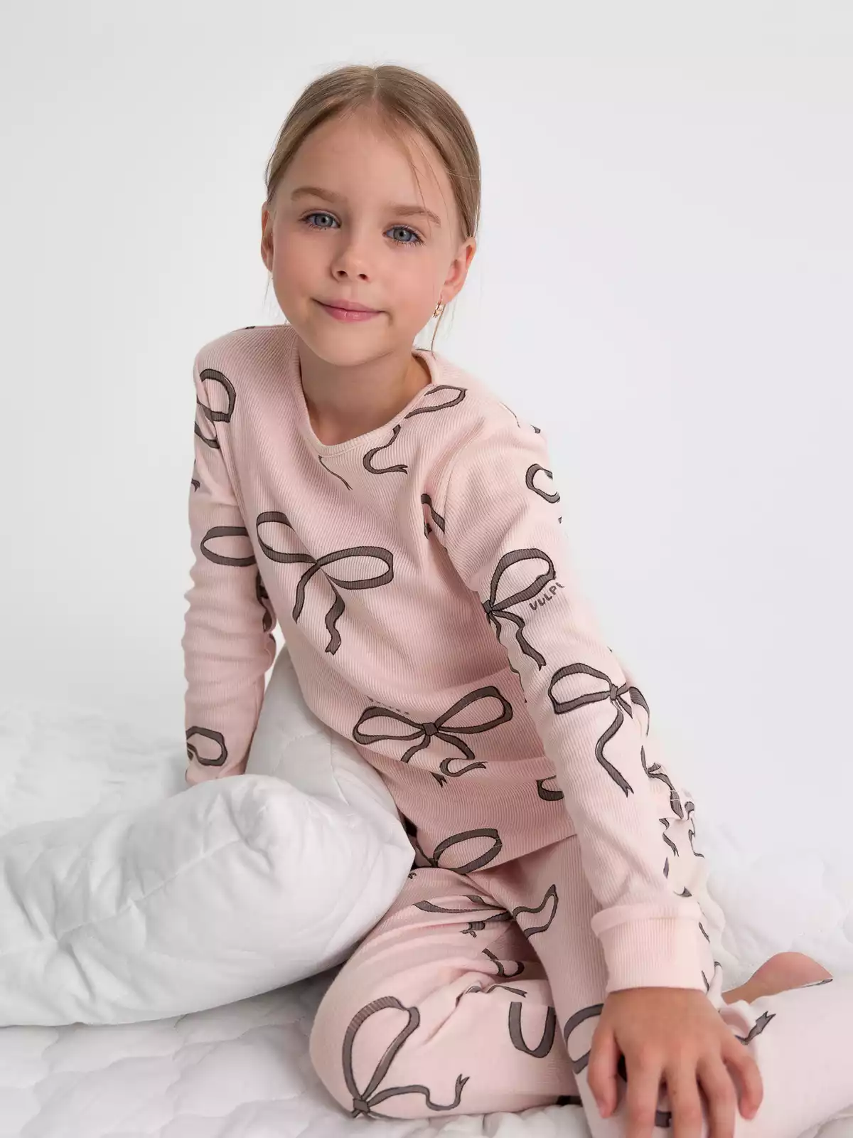 Пижама детская с длинными рукавами выполнена из натурального хлопка, она необычайно мягкая, легкая и не сковывает движения. Брюки на резинке по талии. Вся модель декорирована принтом.