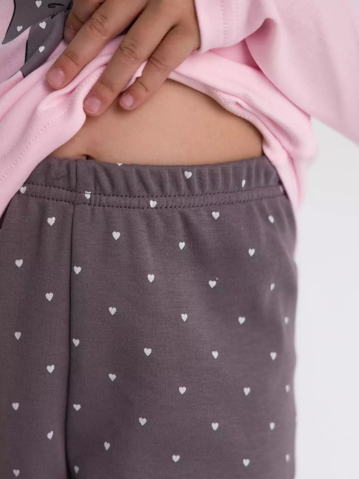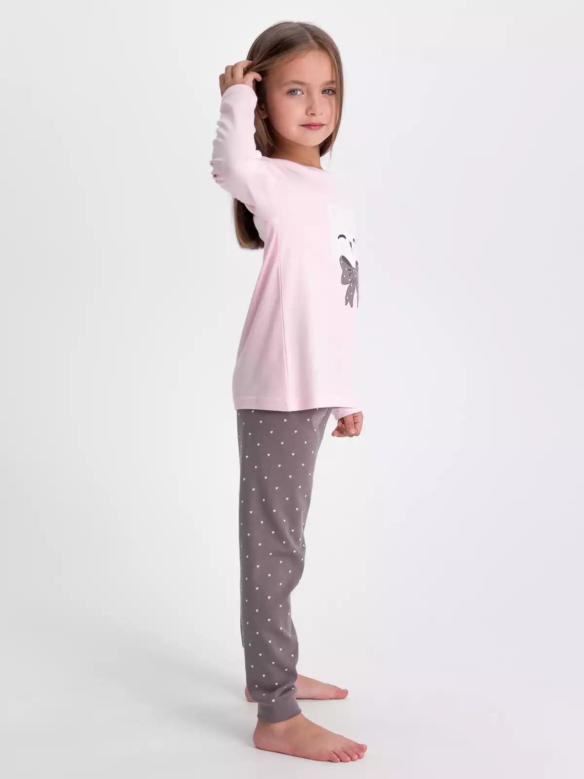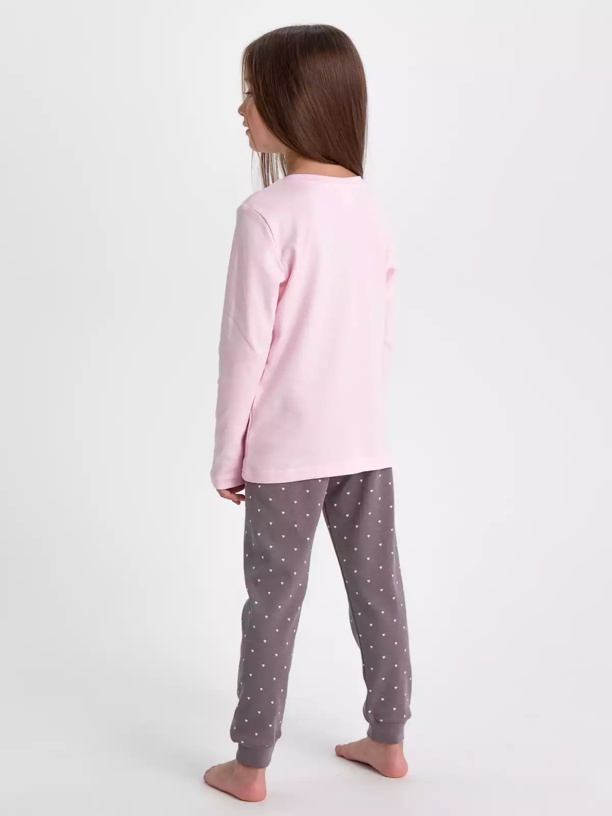 Пижама детская с длинными рукавами выполнена из натурального хлопка, она необычайно мягкая, легкая и не сковывает движения. Брюки на резинке по талии. Перед фуфайки декорирован принтом. В такой стильной пижаме обеспечен комфортный и крепкий сон!