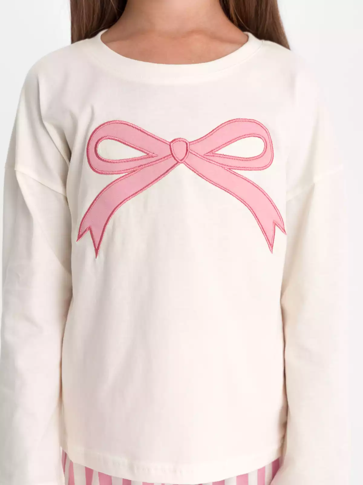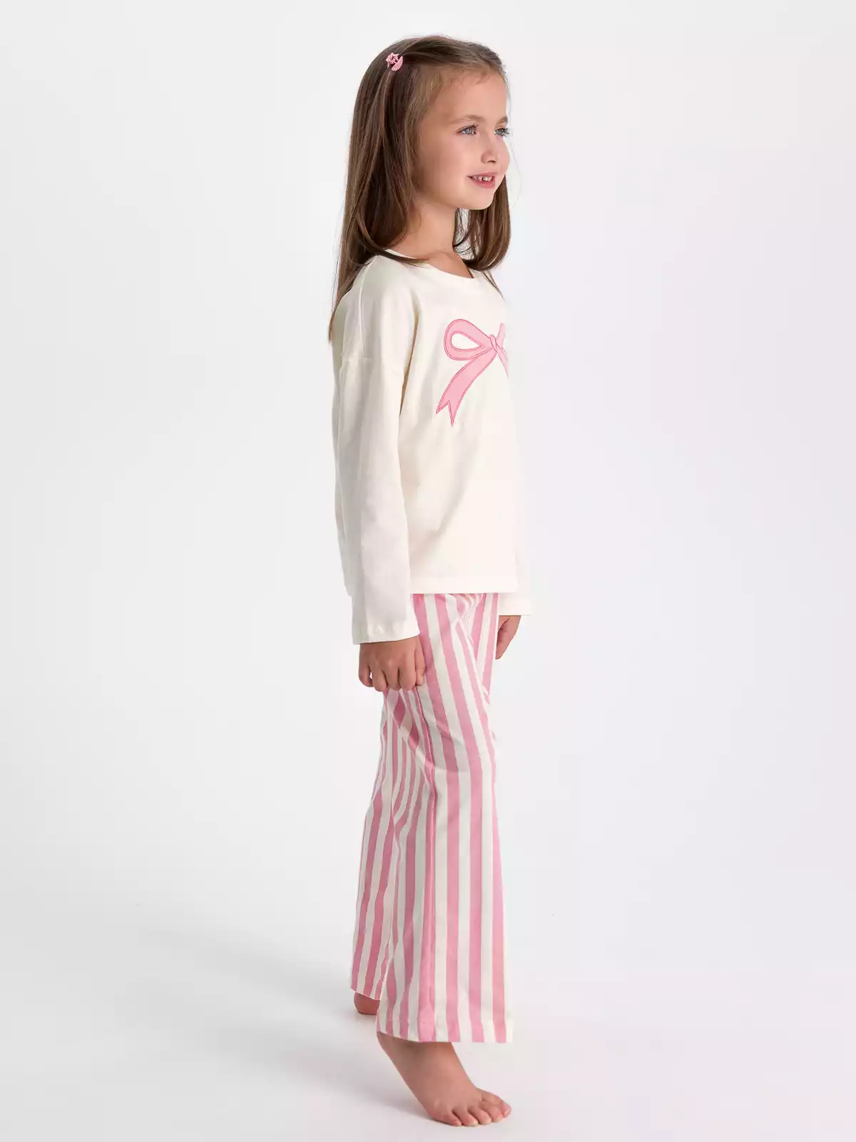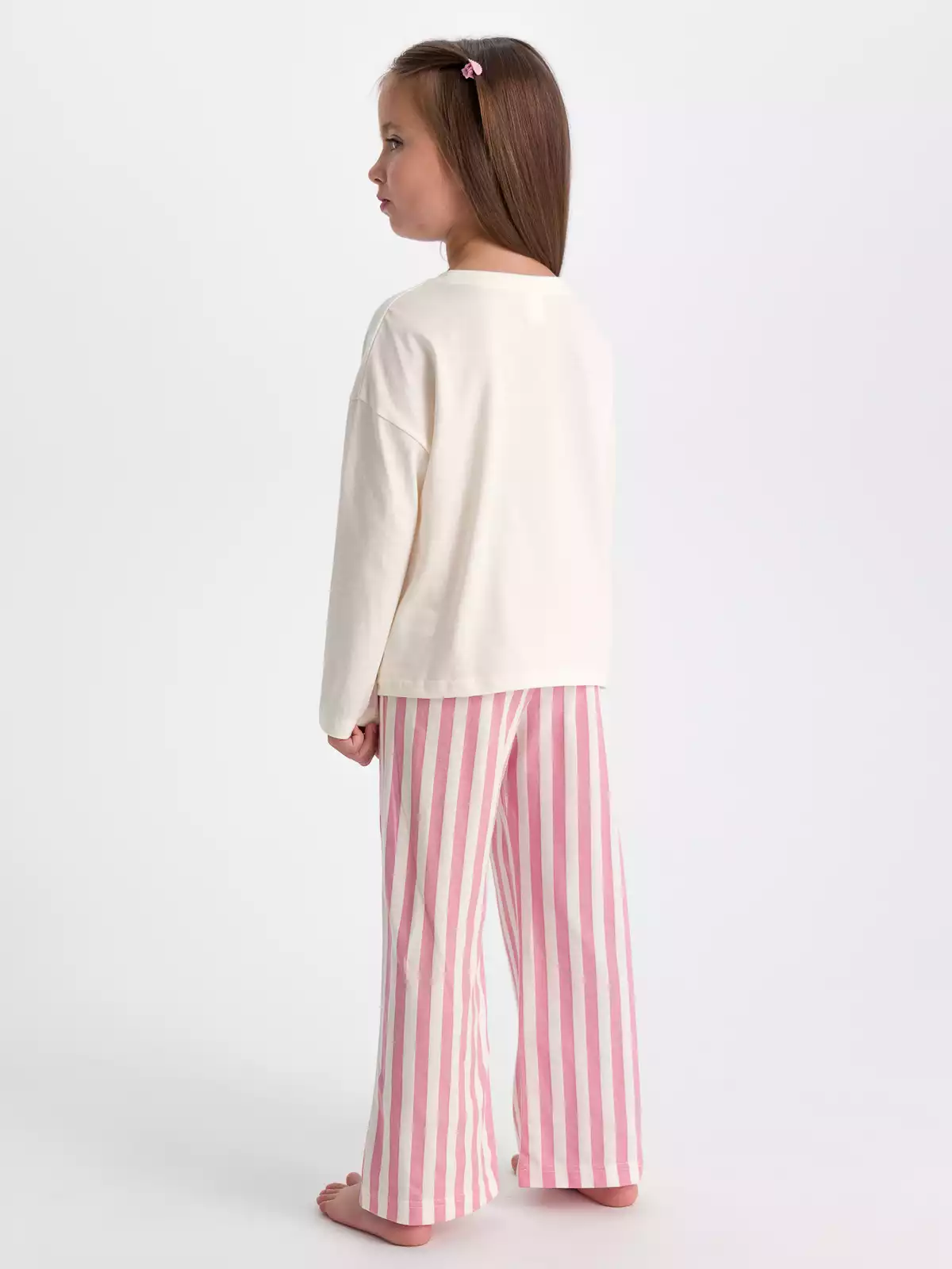 Пижама детская с длинными рукавами выполнена из натурального хлопка, она необычайно мягкая, легкая и не сковывает движения. Брюки на резинке по талии. Перед фуфайки декорирован принтом. В такой стильной пижаме обеспечен комфортный и крепкий сон!
