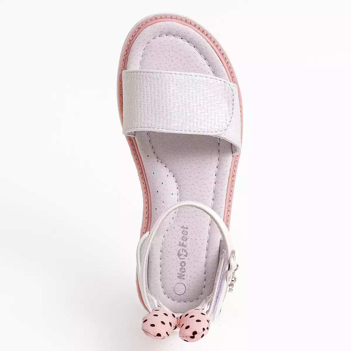 Оригинальные сандалии для девочки. Особенности модели: жесткий задник; мягкий кант; застежка типа Велькро позволяет фиксировать взъем; сандалии полностью расстегиваются в мыске; подклад и стелька из натуральной кожи; стелька с мягким анатомическим валиком; подошва гибкая, легкая, прочные. Соответствуют размеру.