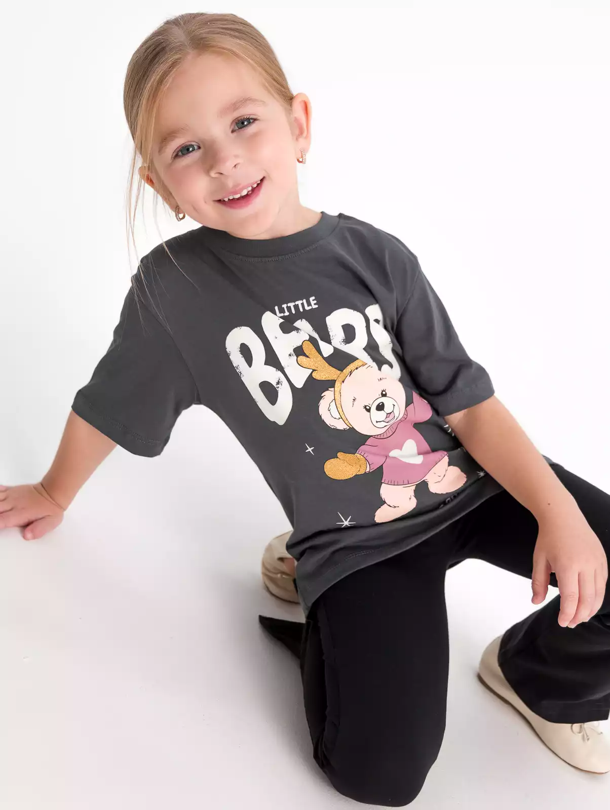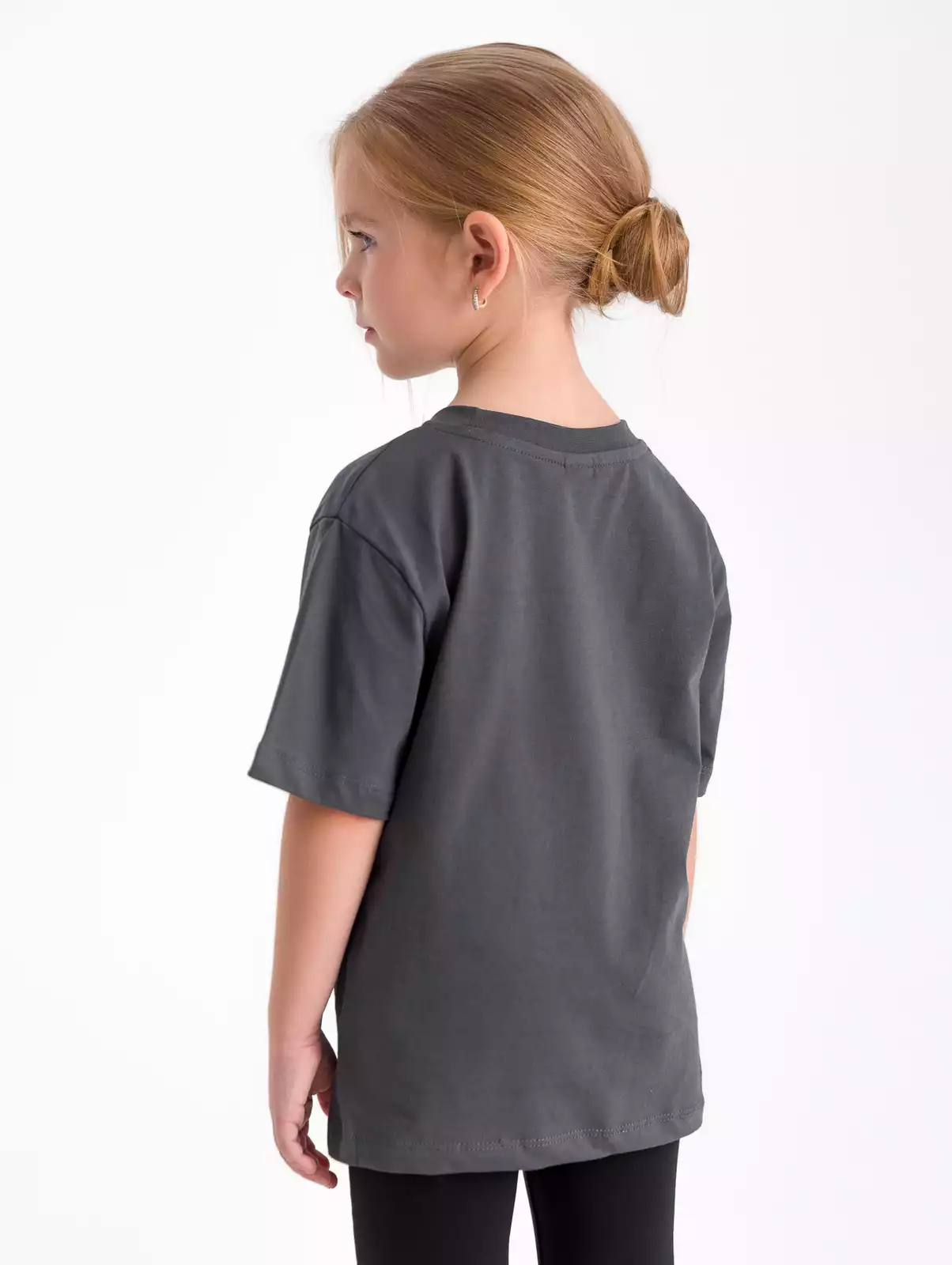Стильная футболка для девочки с ярким принтом. Свободный крой придаёт образу лёгкость и расслабленность, подходит для повседневного ношения в детском саду, на прогулке или дома. Футболки с рисунками и надписями гармонично вписываются в повседневные образы, стильные принты не потеряют цвет и форму даже после многочисленных стирок. Прекрасно сочетается с лосинами, шортами, джинсами, подходит для повседневной носки, прогулок, занятий спортом.