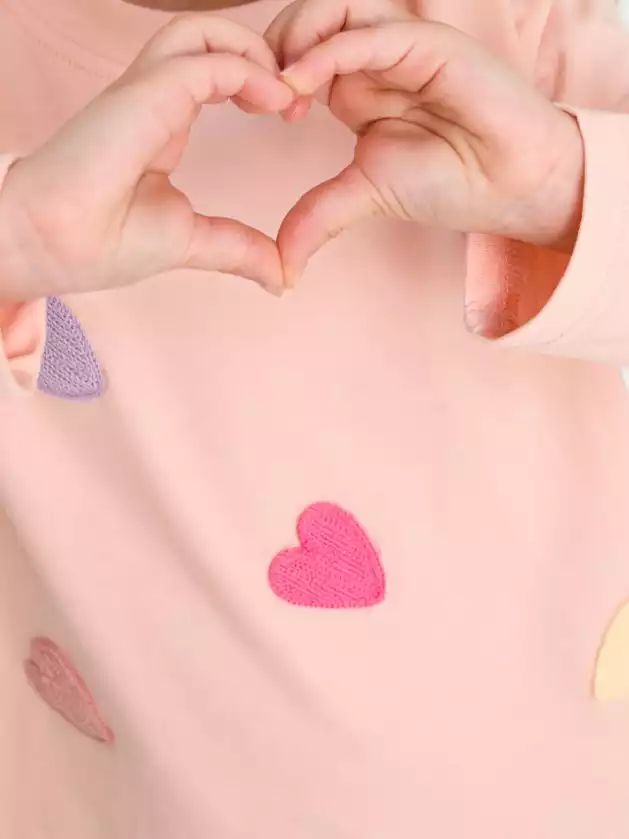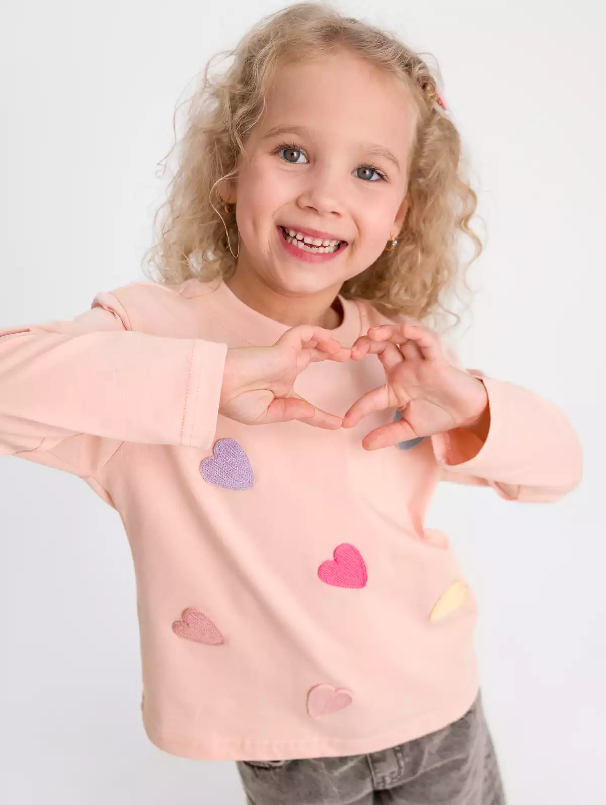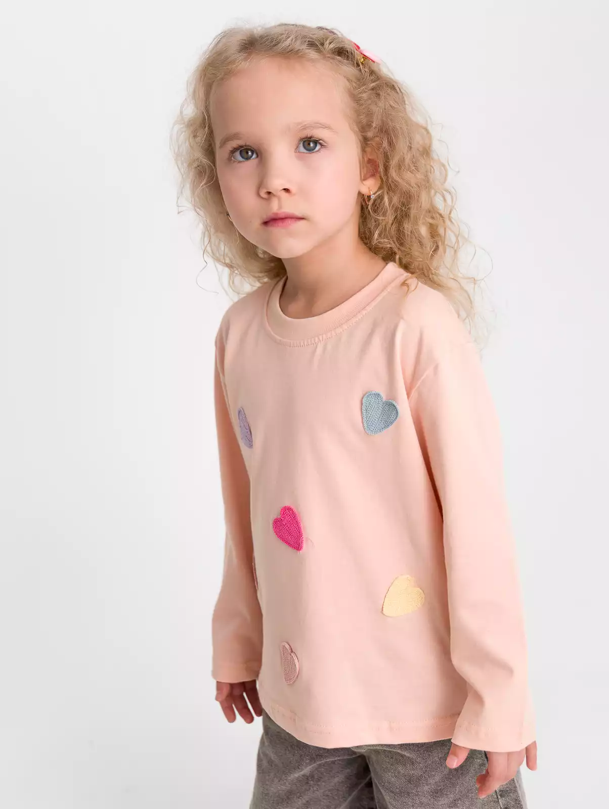 Милый лонгслив для девочки с нежными принтами сердечки подойдет как для повседневных прогулок, так и для праздничных мероприятий. Удобный крой и мягкая ткань обеспечат комфорт на весь день. Яркий лонгслив легко сочетать с юбками или брюками, создавая неповторимые образы. Данный элемент гардероба будет незаменим во время семейных выходов, праздников или просто на прогулках в парке. Он доставит радость каждой девочке своей оригинальностью и высоким качеством.