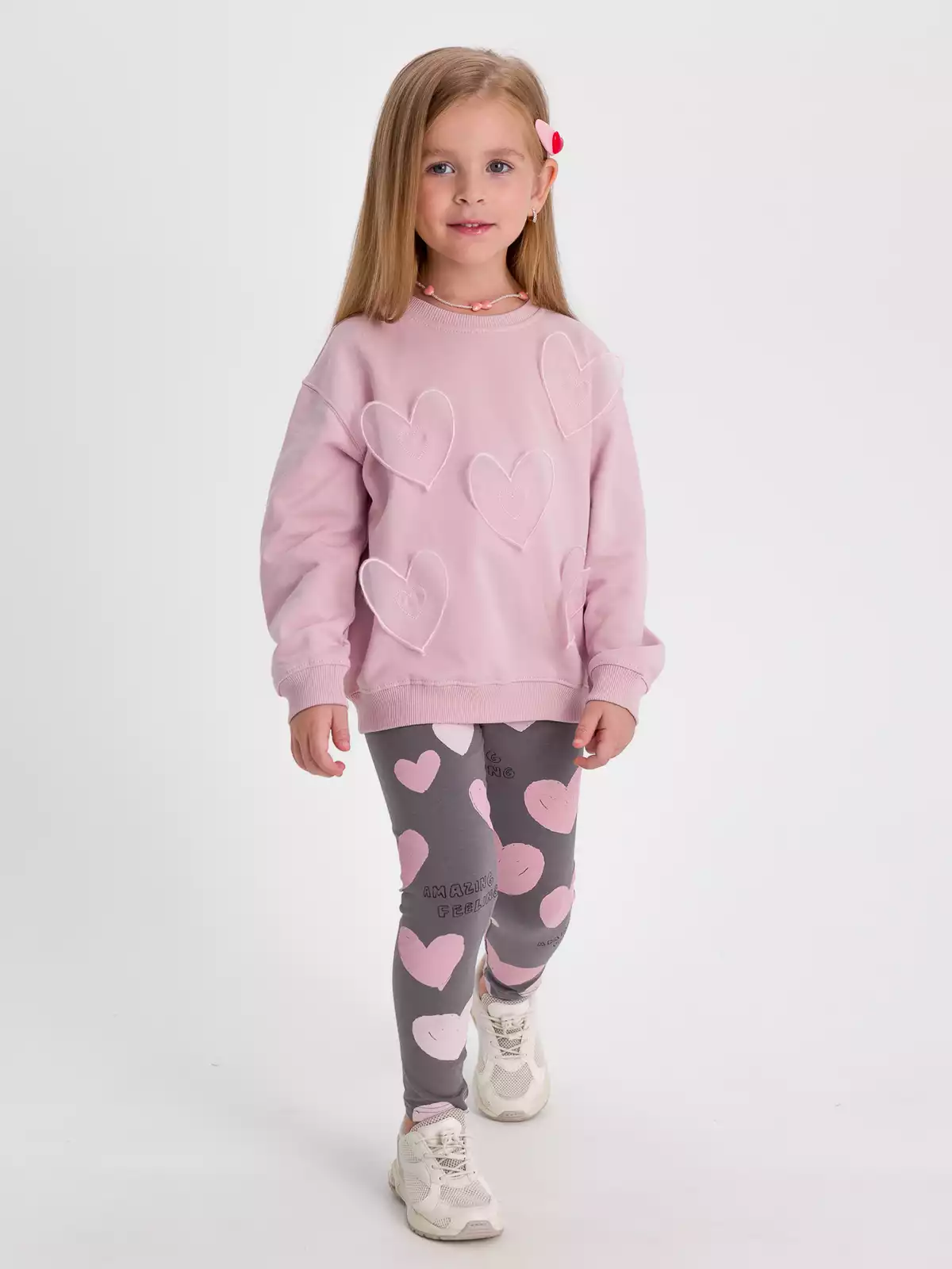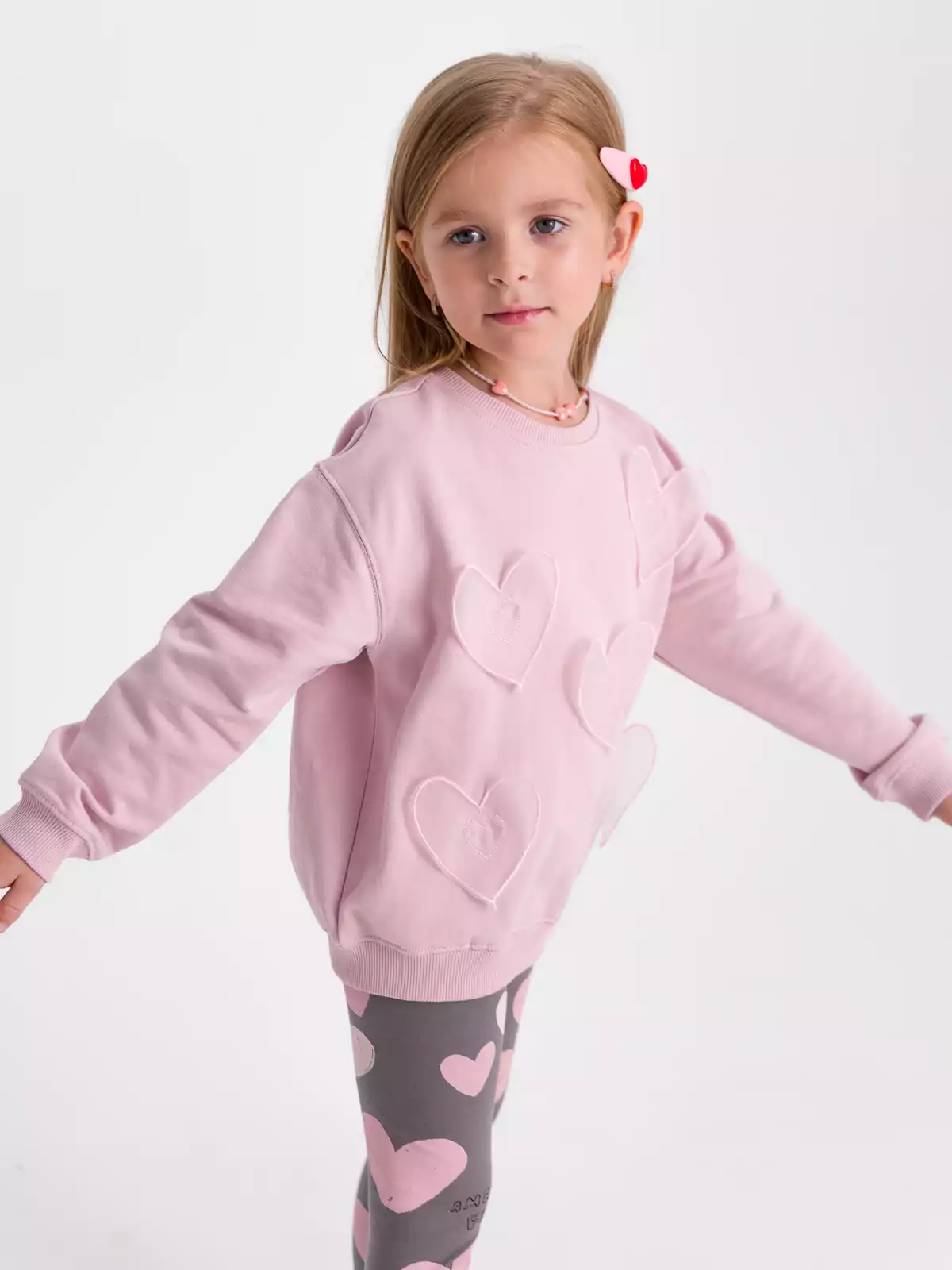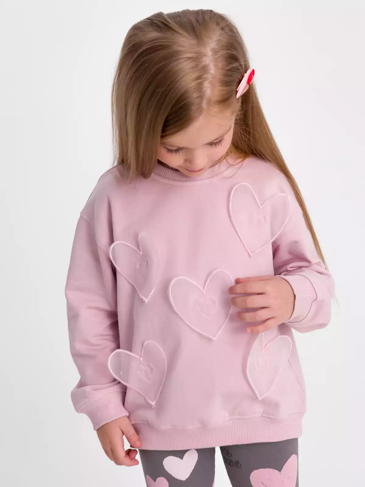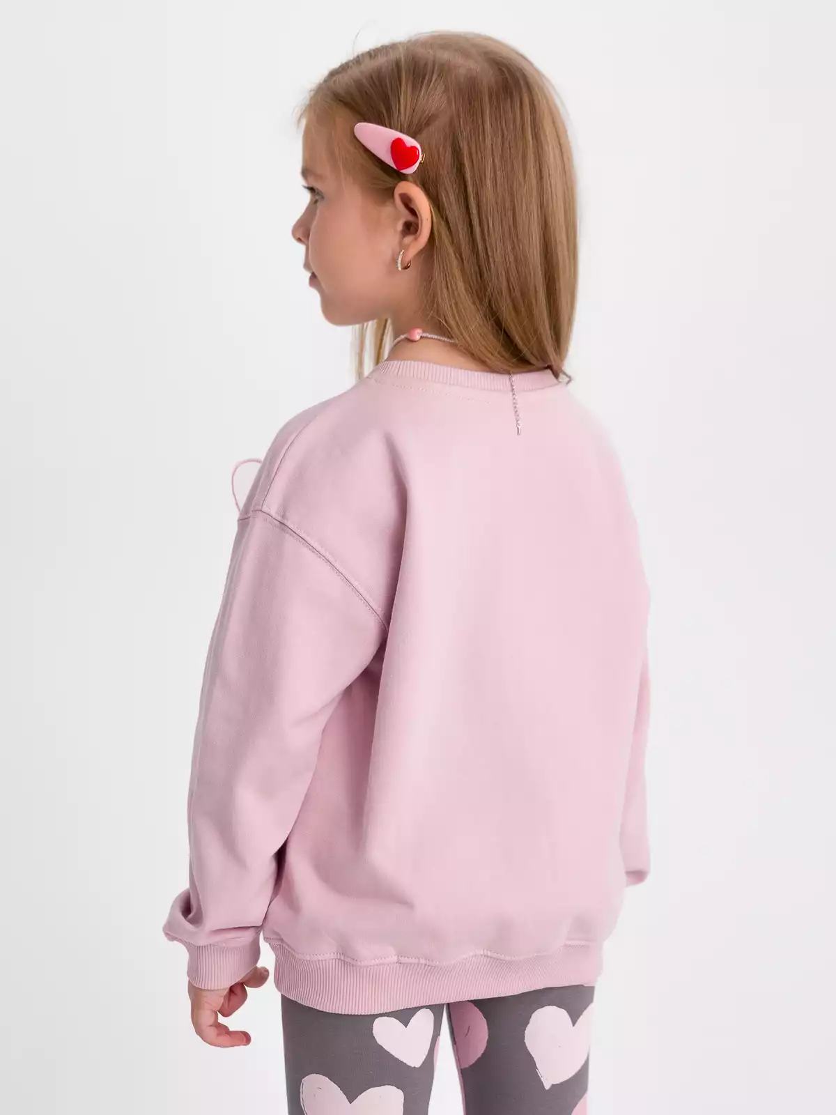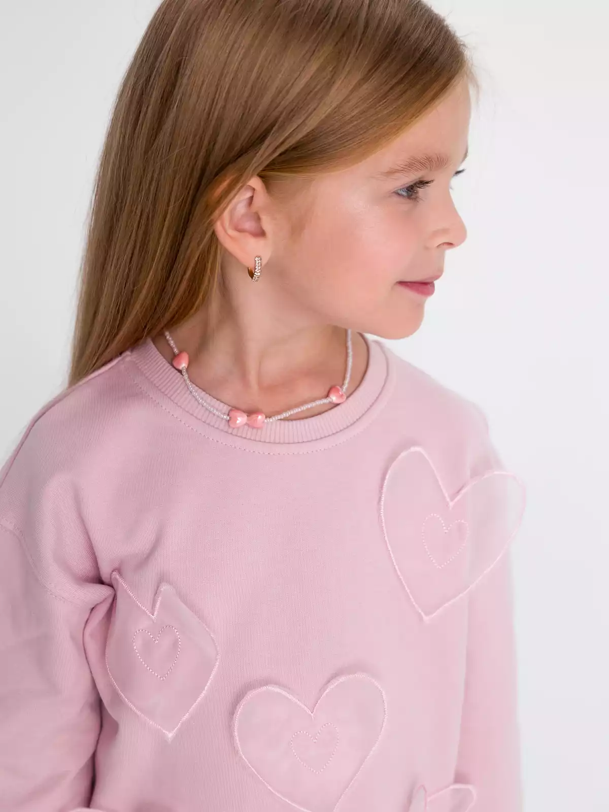 Однотонный свитшот для девочки в розовом цвете из мягкого трикотажа с начесом, идеально сочетается с другими вещами гардероба для стильных образов. Рукав втачной со спущенной линией проймы. Низ рукава на манжетах. Горловина обработана невысоким воротником из трикотажного полотна кашкорсе. Низ изделия с притачным поясом из кашкорсе. Свитшот прекрасно подойдет для повседневной носки на прогулку, в детский сад, на праздник, весной и летом.