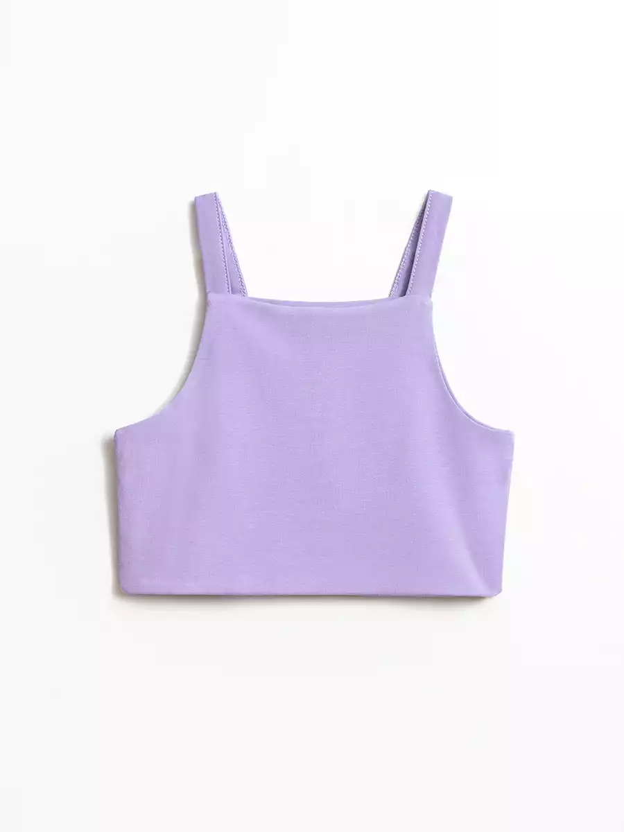 Однотонный укороченный топ пошит из высококачественной гладкой, эластичной хлопковой ткани. Топ очень комфортный в носке, найдет широкое применение в повседневном гардеробе. Широкие лямки не давят на плечи ребенка, облегающий крой прекрасно смотрится на фигуре. В комплекте с шортами или велосипедками смотрится шикарно и подойдет для занятий танцами или спортом, для активного отдыха или просто для прогулок жарким летом на свежем воздухе.