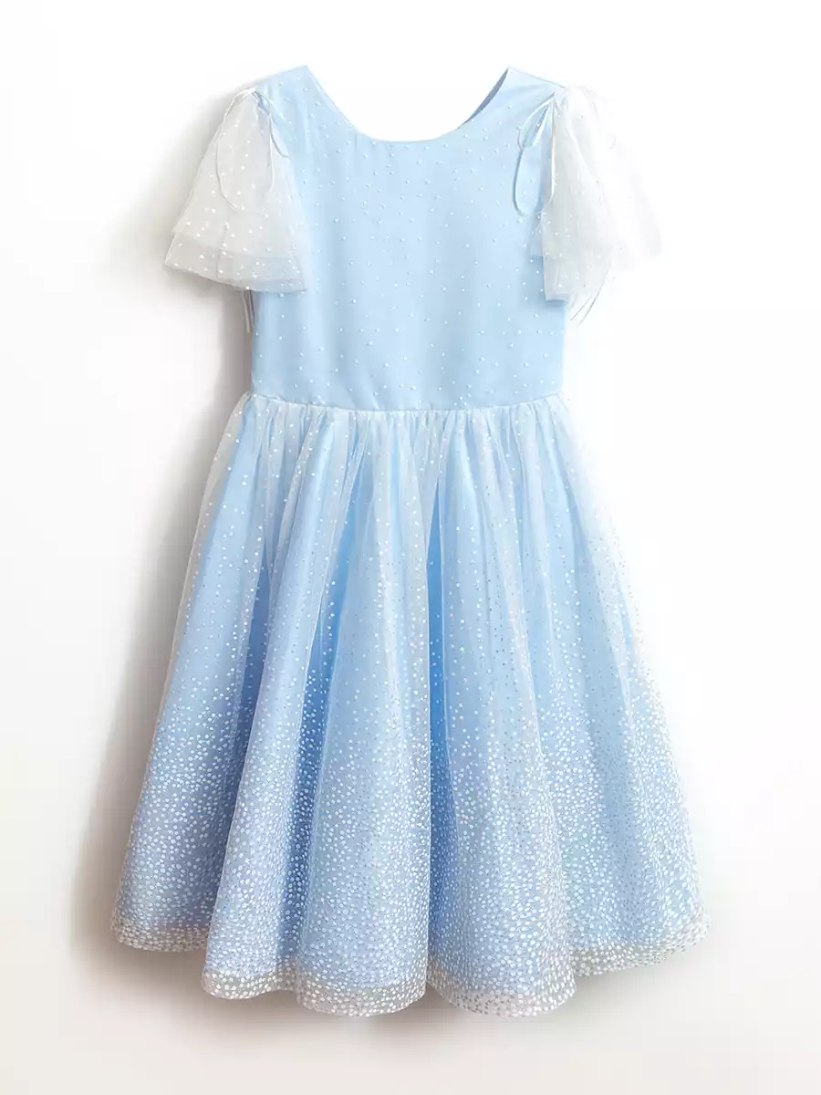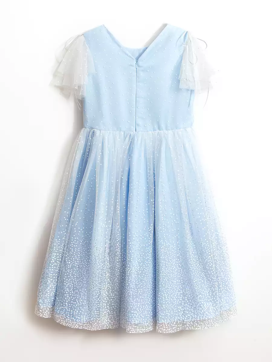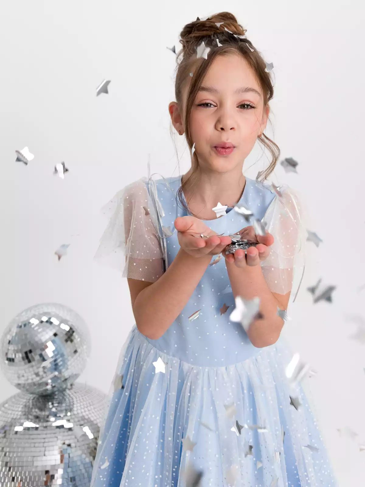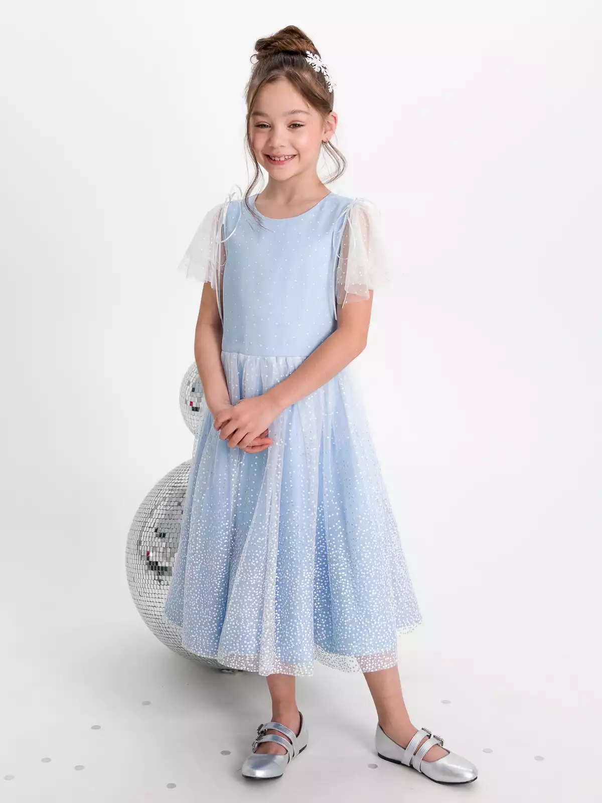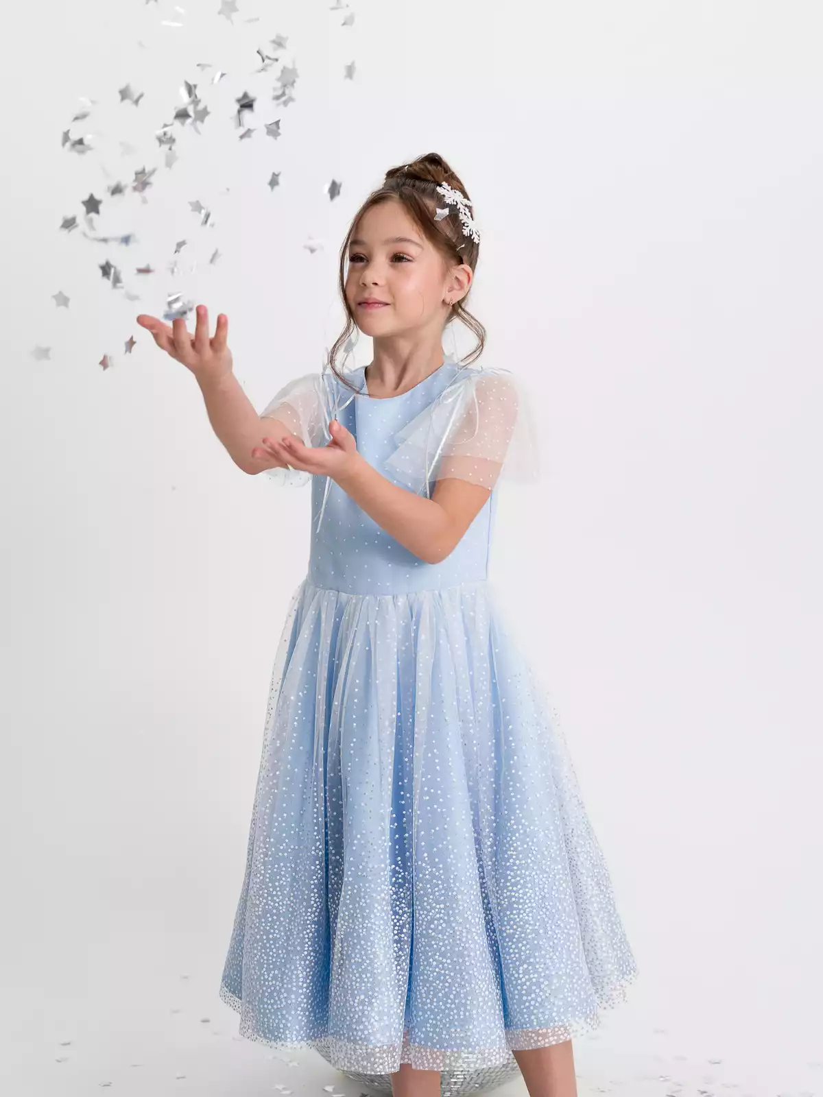 Слегка пышное и легкое платье для вашей любимой принцессы . Нарядное платье для девочки: юбка выполнена из атласной ткани, верх изделия покрывает мягкая сеточка с точечным рисунком из глиттера, модель с подкладом из 100% премиум хлопка . По спинке для удобства одевания расположена потайная молния. Легкие рукава - крылышки декорированы элегантыми бантиками, что подчеркивает индивидуальность маленькой модницы. Воздушная модель - это идеальный подарок для каждой девочки. Пышное платье отлично подойдет для фотосессии, на день рождения, выпускной, утренник или свадьбу. В таком изумительно красивом платье ваш ребенок точно будет в центре внимания.